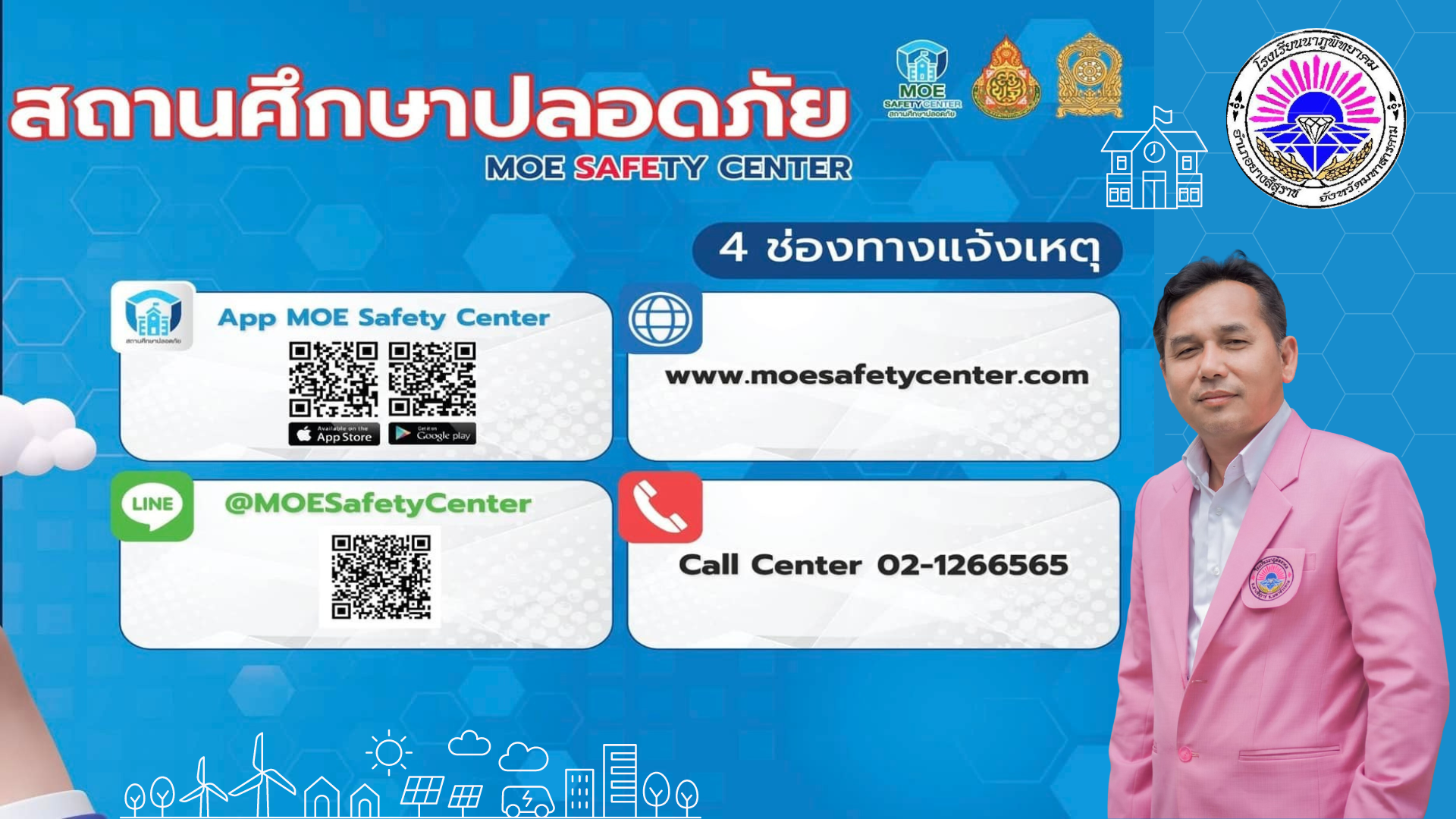 ประชาสัมพันธ์เผยแพร่ระบบแจ้งเหตุของ MOE Safety Center