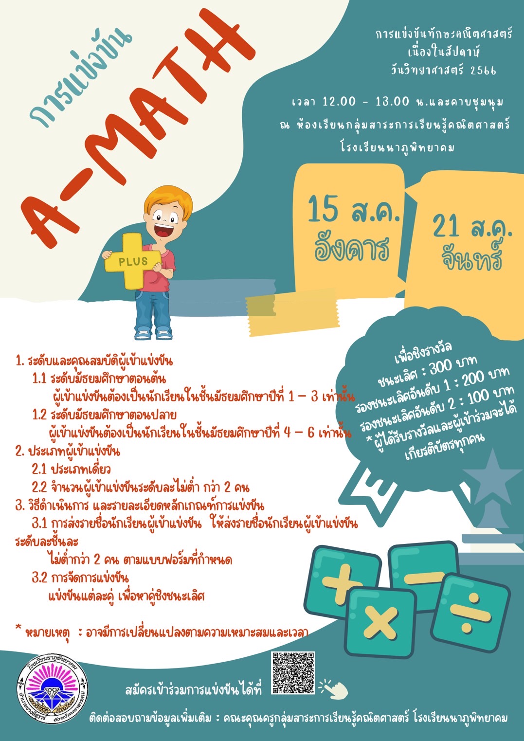 ขอเชิญนักเรียนร่วมกิจกรรมการแข่งขัน กลุ่มสาระการเรียนรู้คณิตศาสตร์