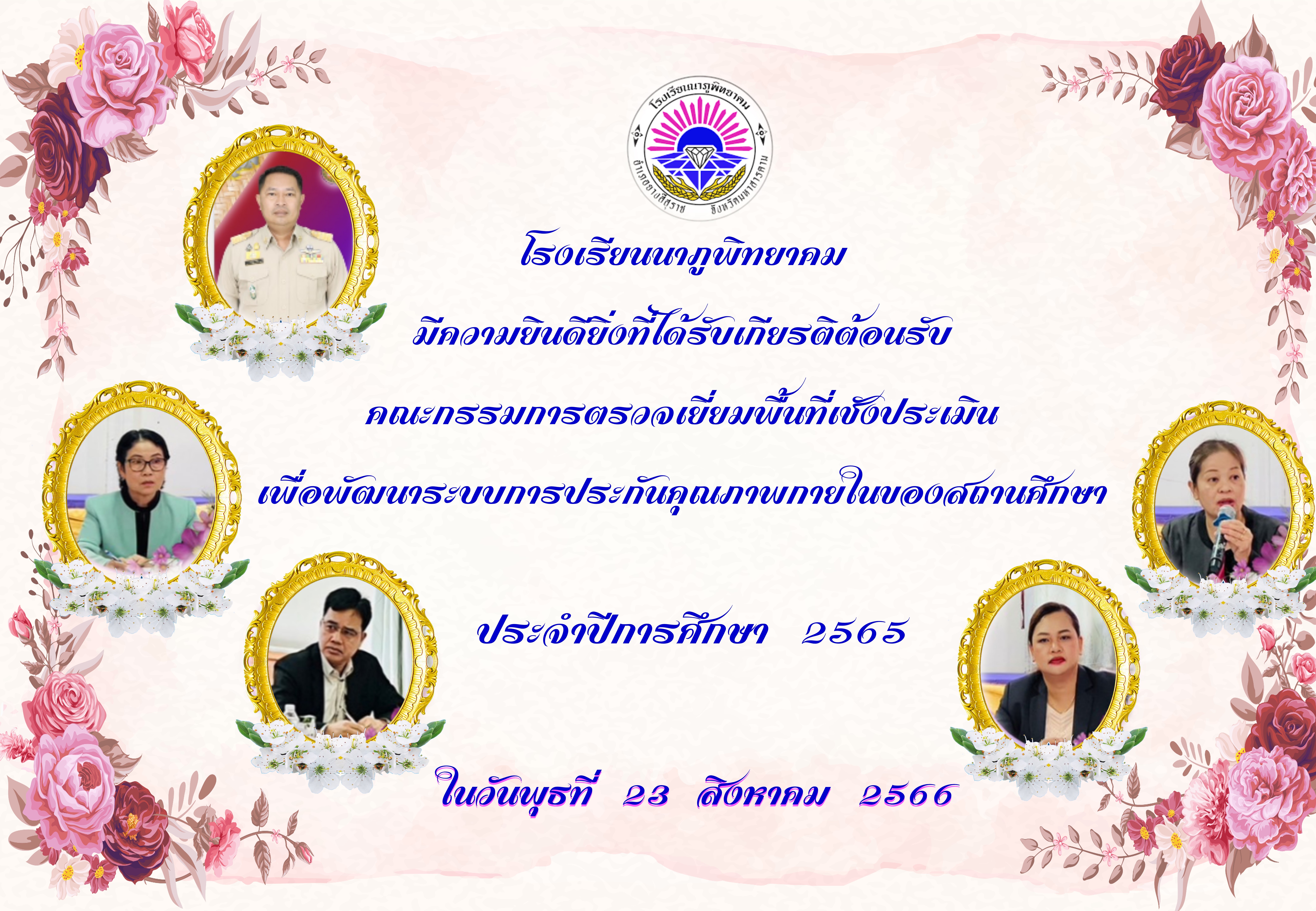 โรงเรียนนาภูพิทยาคม มีความยินดียิ่งที่ได้รับเกียรติต้อนรับคณะกรรมการตรวจเยี่ยมพื้นที่เชังประเมินเพื่อพัฒนาระบบการประกันคุณภาพกายในของสถานศึกษา ประจำปีการศึกษา 2565