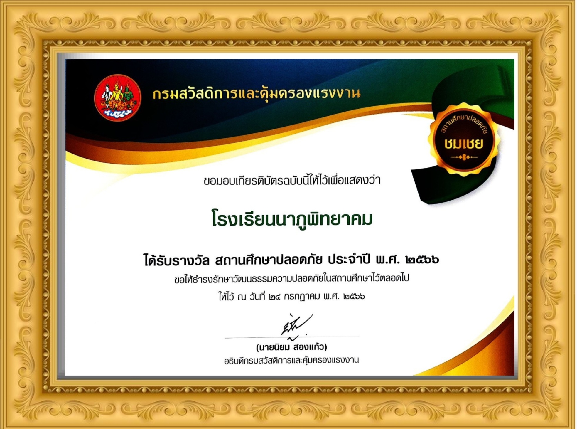 โรงเรียนนาภูพิทยาคมได้รางวัล สถานศึกษาปลอดภัย จาก กระทรวงแรงงาน ซึ่งเป็นผลงานระดีบประเทศ ประจำปี พ.ศ. 2565