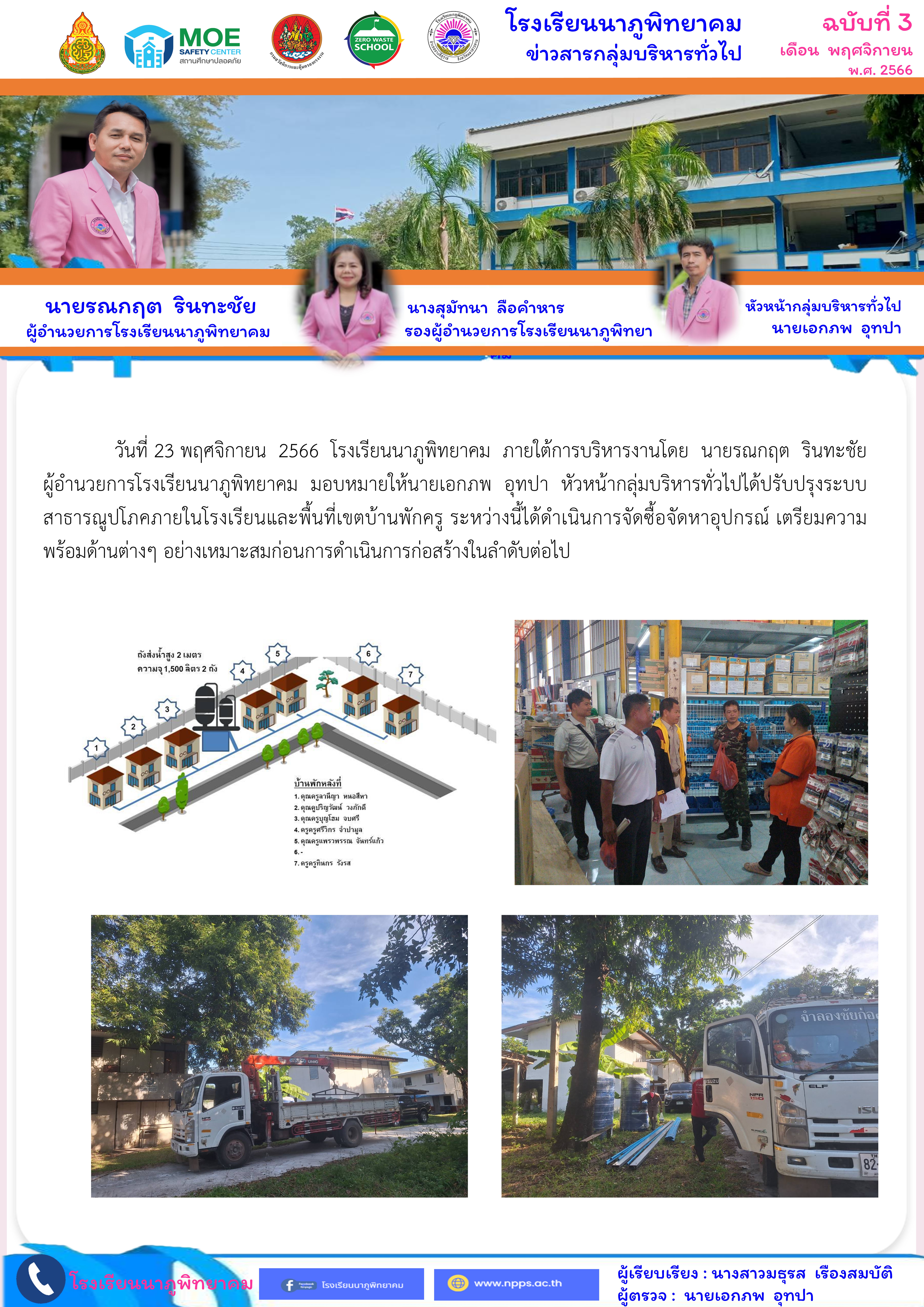 โรงเรียนนาภูพิทยาคมได้ดำเนินการปรับปรุงระบบสาธารณูปโภคภายในโรงเรียนและพื้นที่เขตบ้านพักครู เพื่อรองรับความสะดวกในการบริหารจัดการต่อไป
