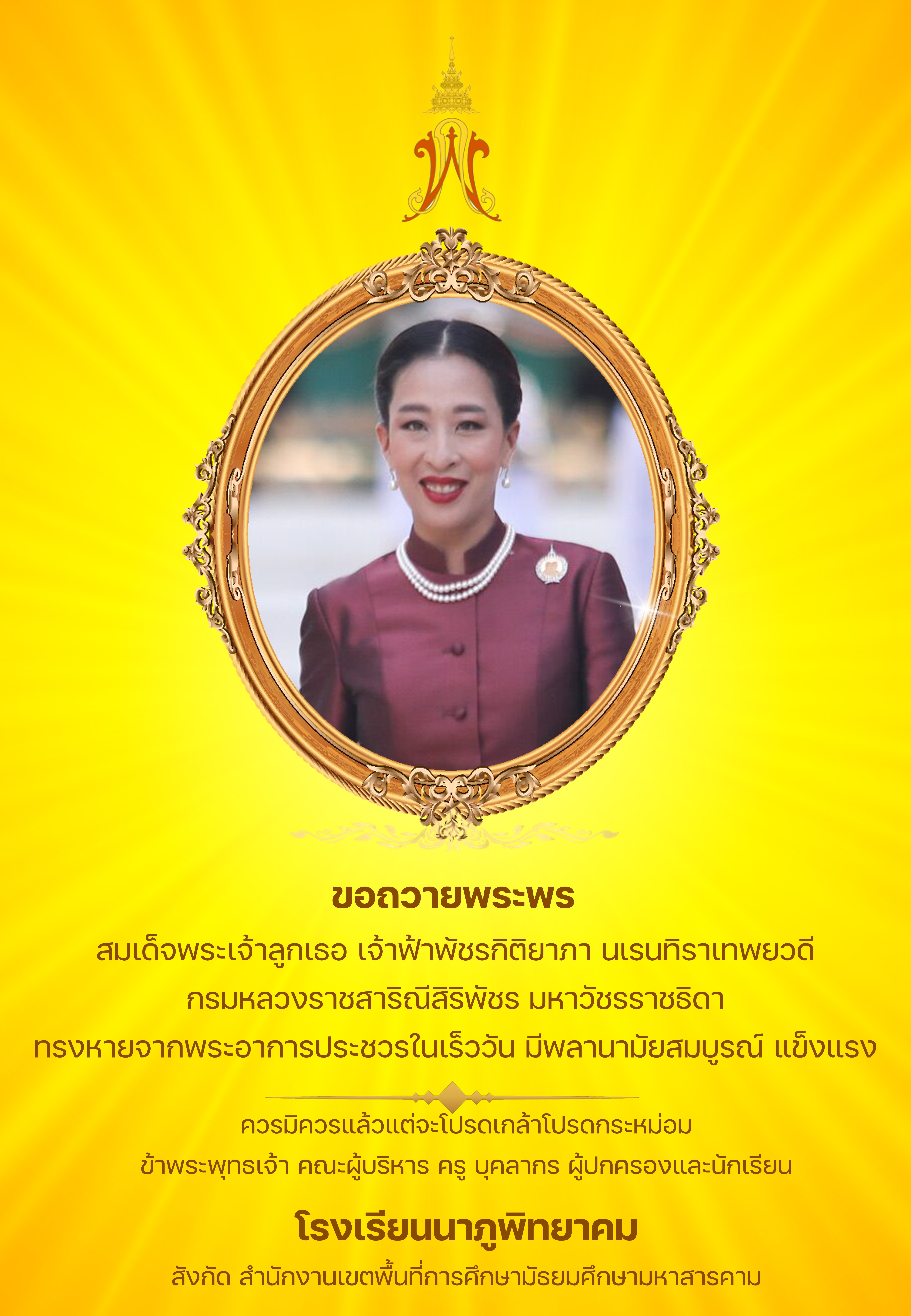 ข้าพระพุทธเจ้าคณะผู้บริหาร ครู บุคลากร ผู้ปกครองและนักเรียน โรงเรียนนาภูพิทยาคม สังกัด สำนักงานเขตพื้นที่การศึกษามัธยมศึกษามหาสารคาม