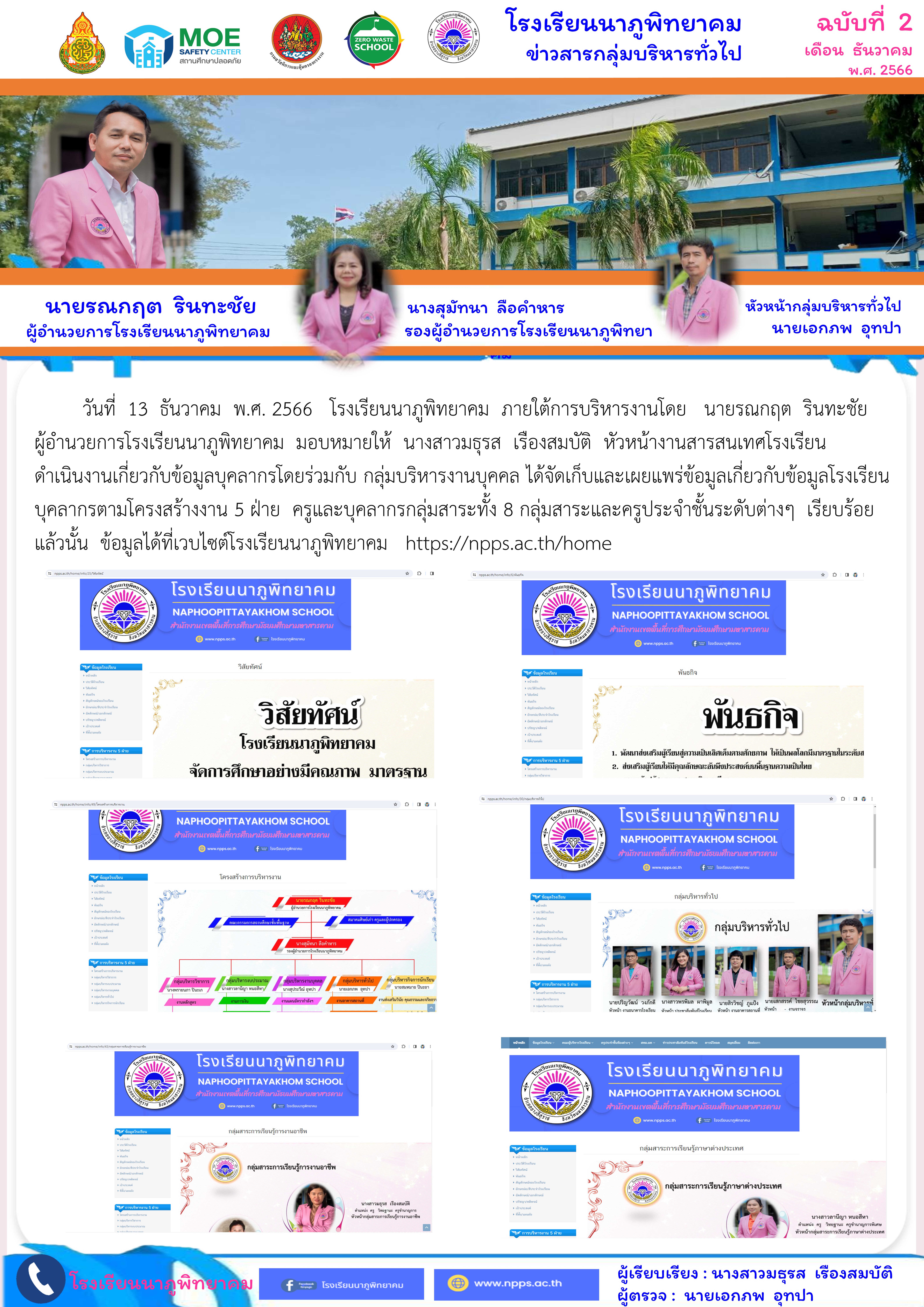 วันที่ 13 ธันวาคม พ.ศ.2566 งานสารสนเทศเผยแพร่ข้อมูลสารสนเทศโรงเรียนนาภูพิทยาคมด้านบุคลากร ตามโครงสร้างงาน ปีงบประมาณ 2567