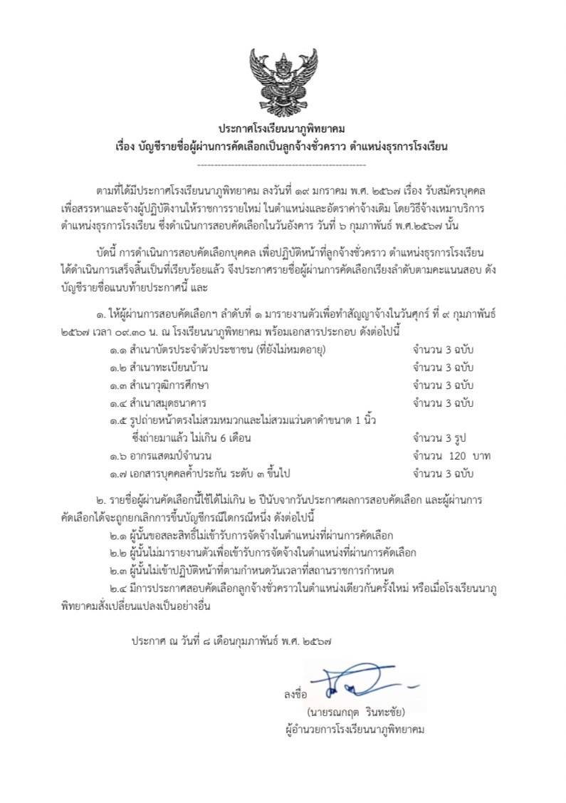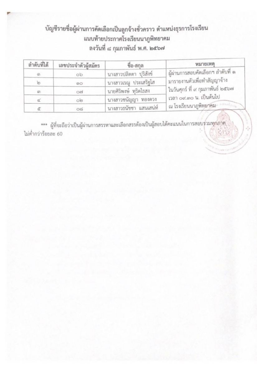 โรงเรียนนาภูพิทยาคม ประกาศผลสอบคัดเลือก ตำแหน่ง ธุรการ
