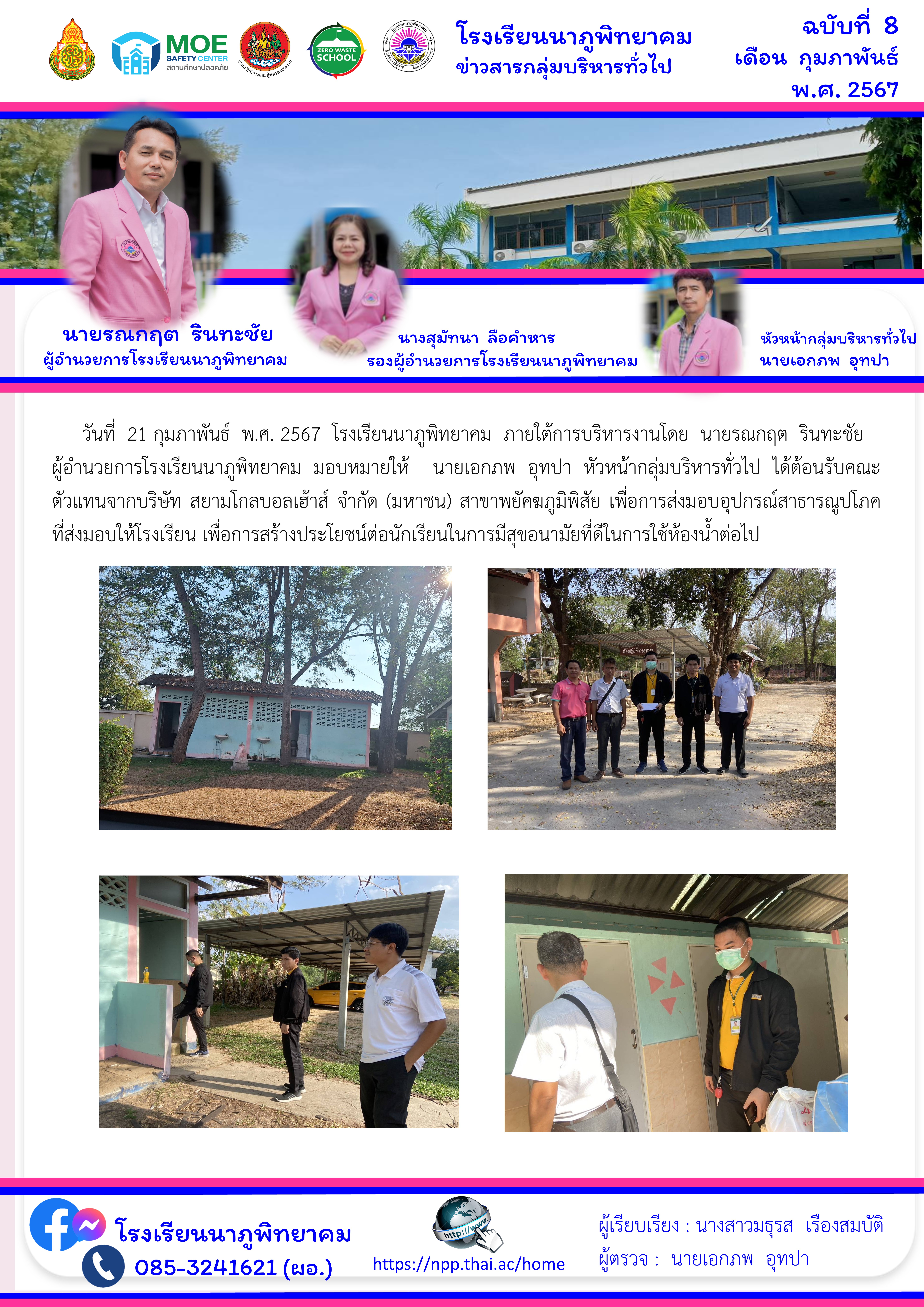 โรงเรียนนาภุพิทยาคมได้รับการต้อนรับตัวแทนจากบริษัท สยามโกลบอลเฮ้าส์ จำกัด (มหาชน) สาขาพยัคฆภูมิพิสัย เพื่อส่งมอบอุปกรณ์สำหรับสร้างสาธารณูปโภคภายในโรงเรียน