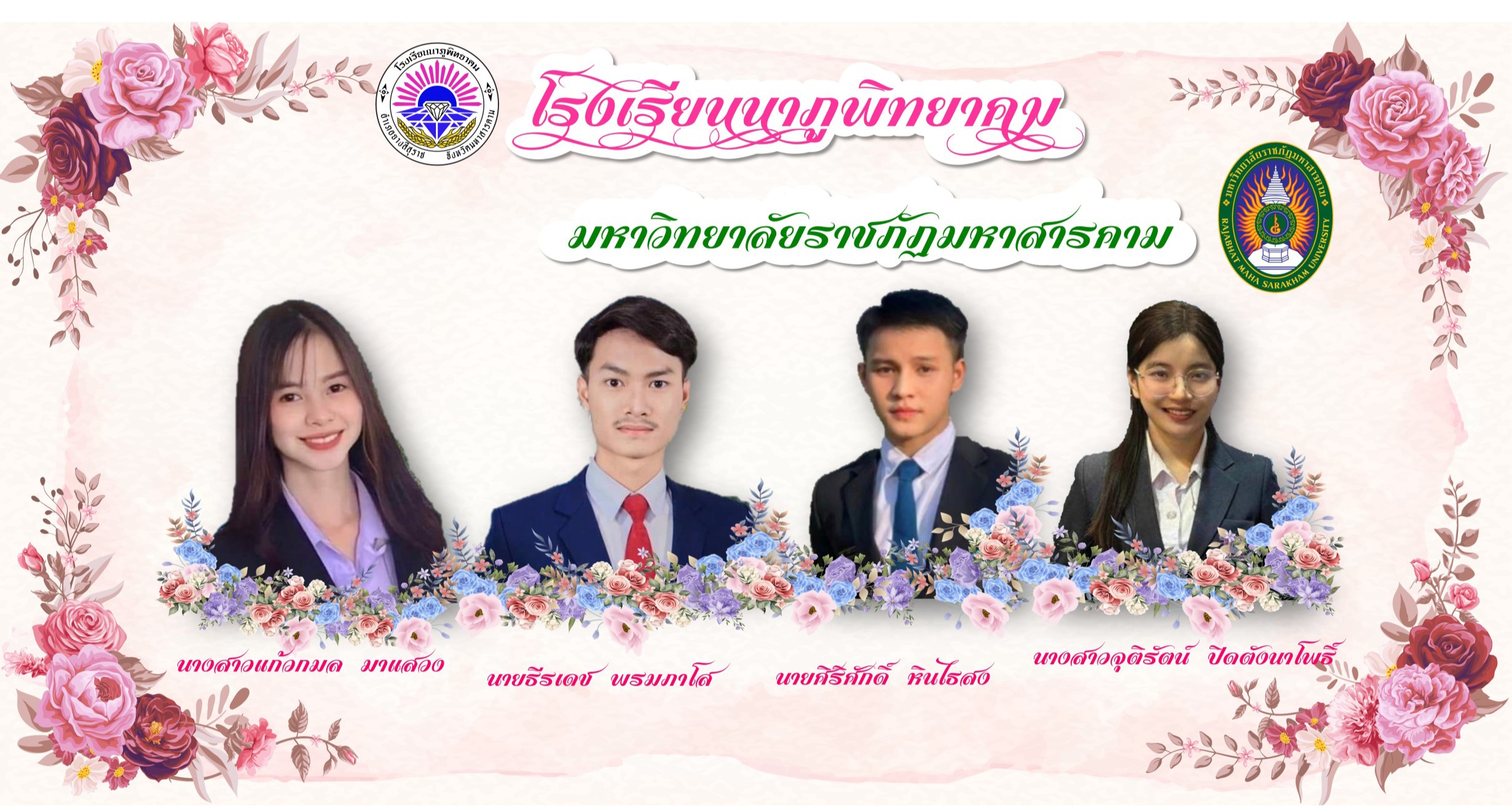 ???????? โรงเรียนนาภูพิทยาคม ???????? ขอบพระขอบคุณ ผู้บริหาร คณะอาจารย์ คณะครุศาสตร์ มหาวิทยาลัยราชภัฏมหาสารคาม ที่ให้ความไว้วางใจ ส่งนักศึกษาฝึกประการณ์วิชาชีพครูที่ปฏิบัติหน้าที่อย่างดียิ่ง มีความรู้ มีความสามารถ เข้ามาเป็นส่วนหนึ่งของโรงเรียนนาภูพิทยาคม ในครั้งนี้