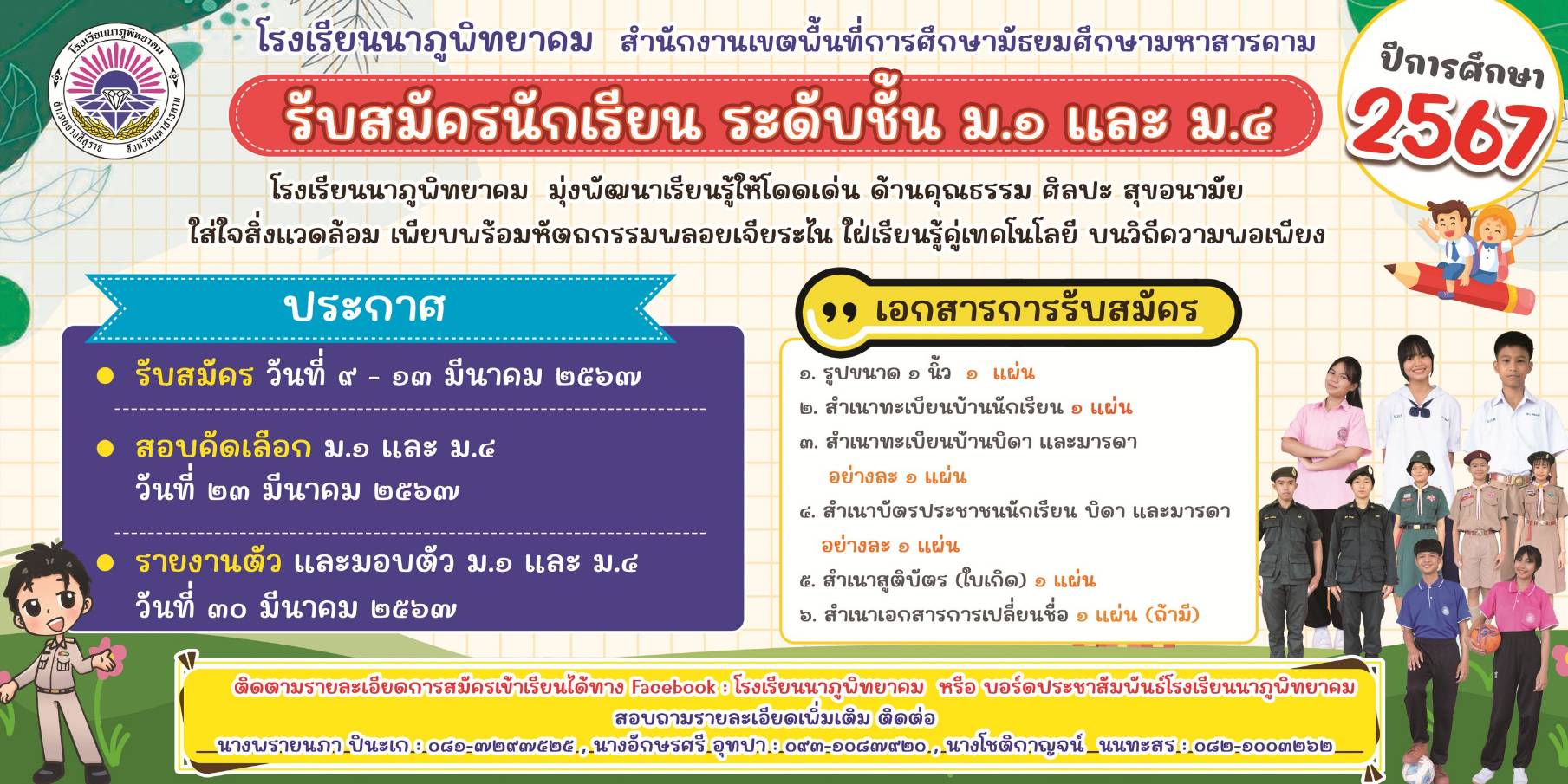 ประชาสัมพันธ์การรับสมัครนักเรียน สำหรับนักเรียน ปีการศึกษา 2567