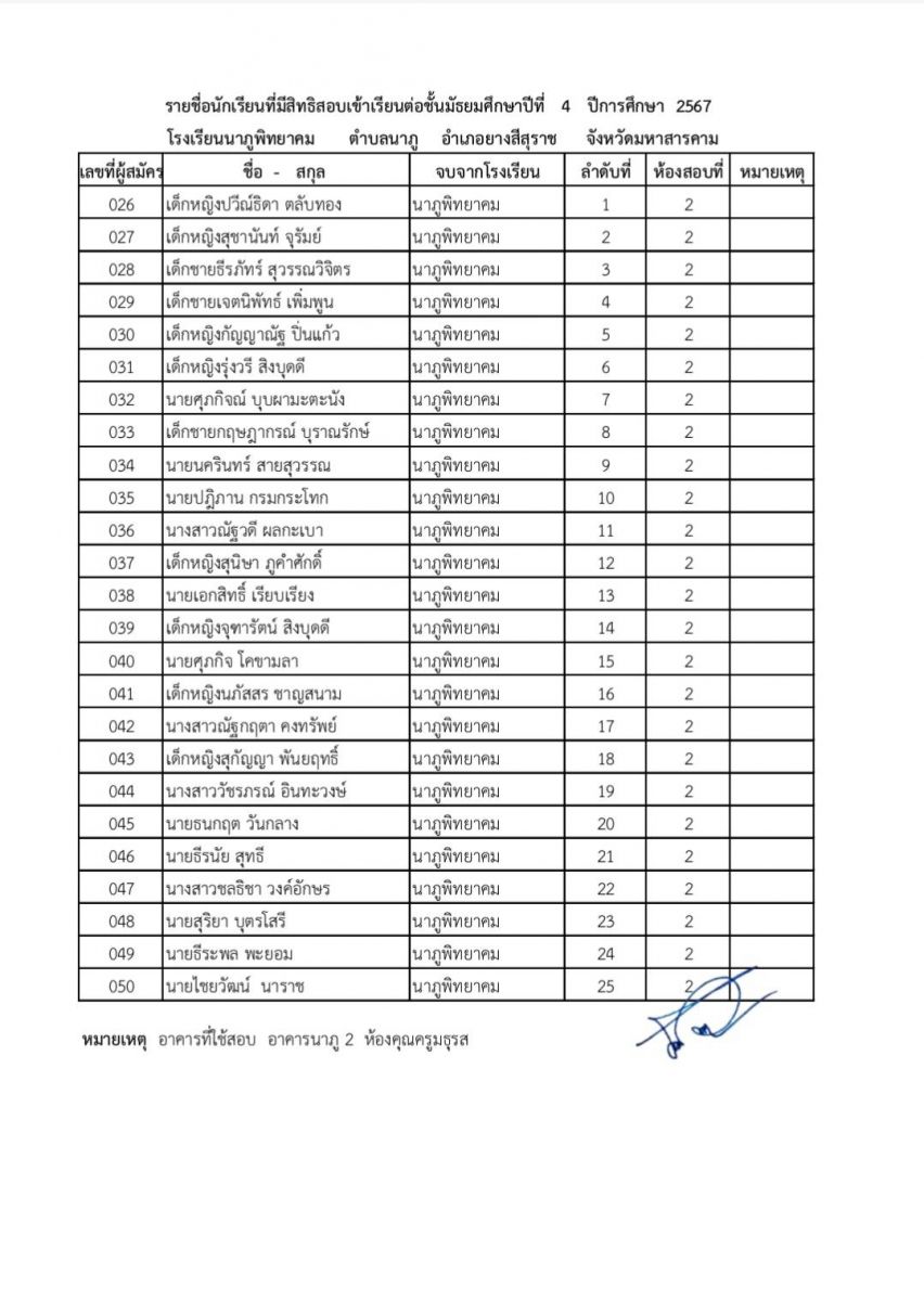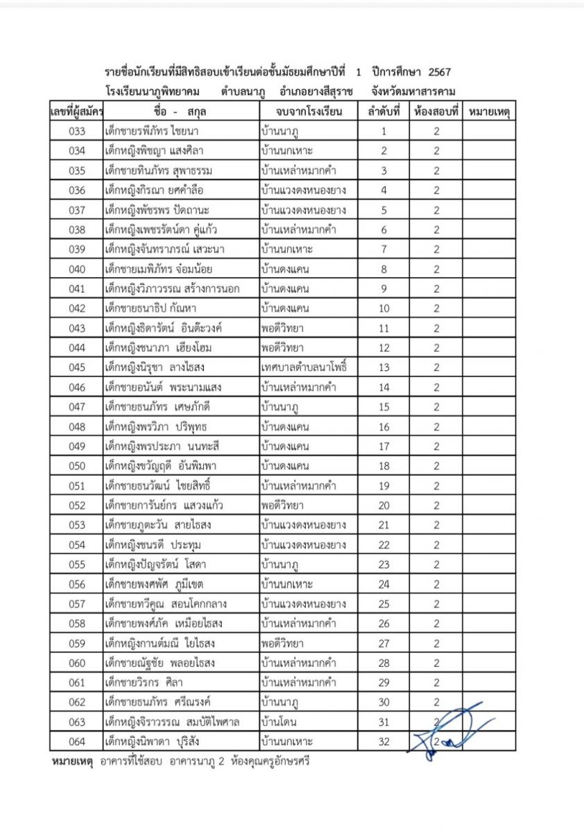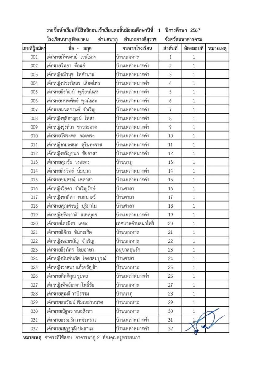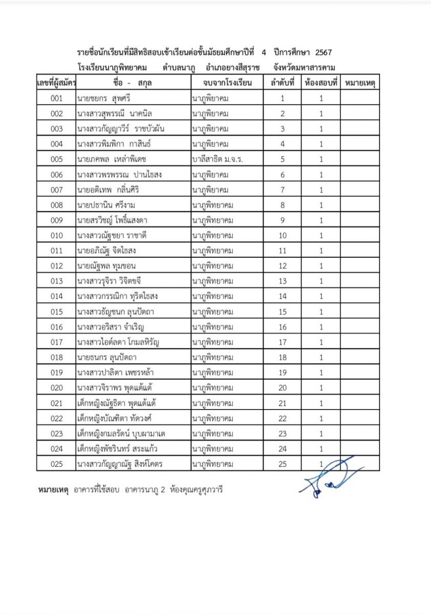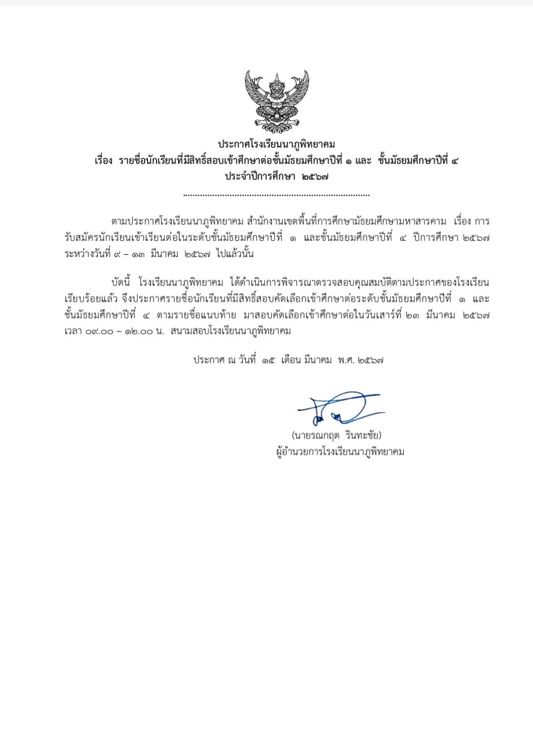 โรงเรียนนาภูพิทยาคม ประกาศรายชื่อนักเรียนที่มีสิทธิ์สอบเข้าศึกษาต่อ ชั้นม. 1 และม. 4 ประจำปีการศึกษา 2567