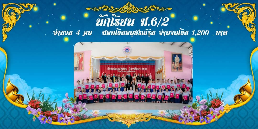 นักเรียนชั้นมัธยมศึกษาปีที่ 6/2 เพื่อจุดประสงค์ให้เป็นการสร้างอนุสรณ์รุ่น จำนวน 1,200 บาท