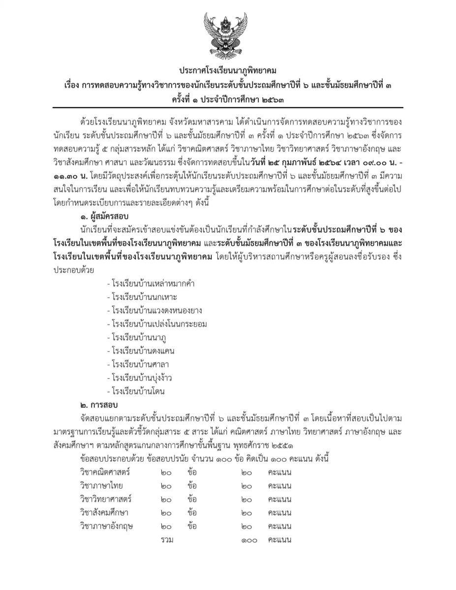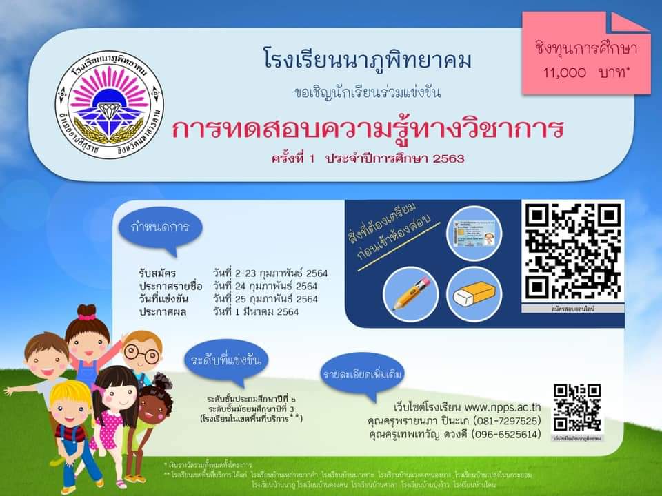 โรงเรียนนาภูพิทยาคม เชิญเข้าร่วมแข่งขันทดสอบความรู้ทางวิชาการ