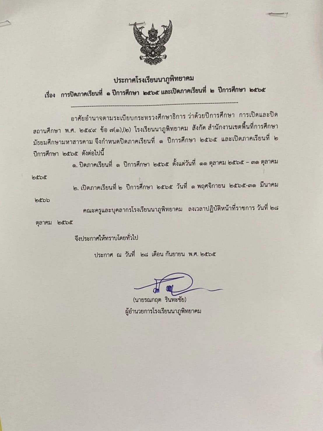 **ปิดภาคเรียนที่ 1 เปิดภาคเรียนที่ 2