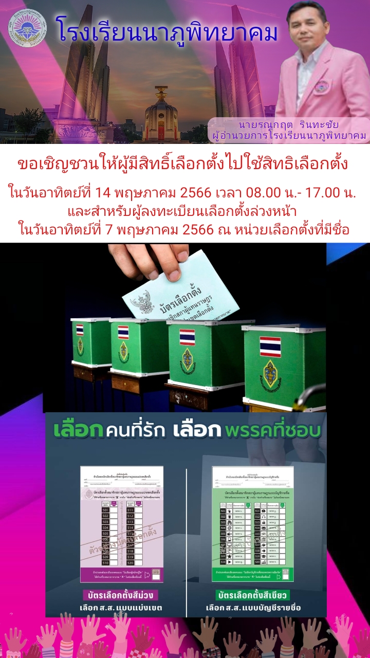 ขอเชิญชวนทุกท่านร่วมออกไปใช้สิทธิ์เลือกตั้งในวันที่ 14 พ.ค.2566